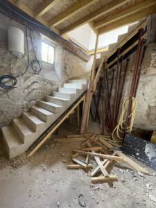 Les rénovations de maison effectuées par la société respectent l’âme, le cachet et la mise en valeur du bâti existant, que ce soit par des enduits à la chaux, la remise apparente des moellons ou le ravalement de pierre de taille.